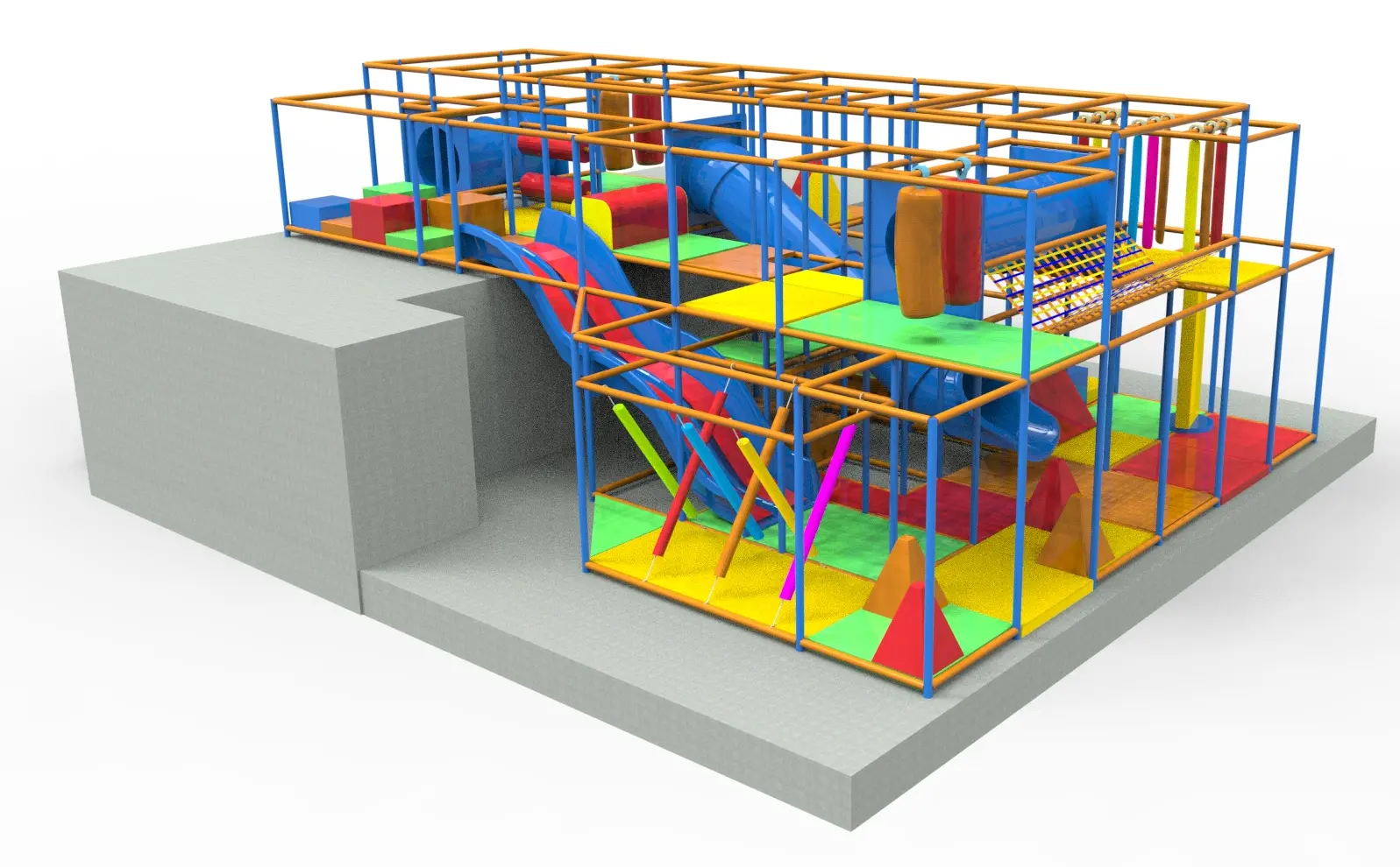 Leicon kreeg de opdracht om de ruimte om te vormen tot een moderne en veilige overdekte speeltuin waar kinderen opnieuw naar hartenlust kunnen ravotten. Leicon maakte een ontwerp met maximaal speelplezier voor de kinderen zonder daarbij het budget van de klant uit het oog te verliezen.