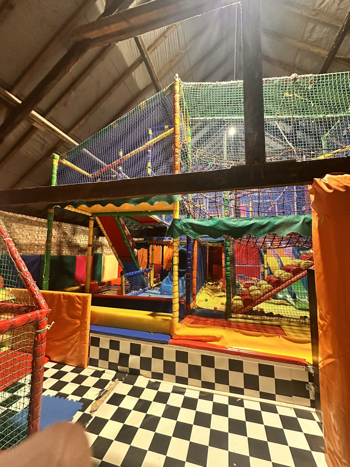 Centraal in de nieuwe indoor speeltuin staat een grote speelstructuur met tunnels, klimtorens en glijbanen die kinderen uitnodigt om op avontuur te gaan. Daarnaast werd ook gedacht aan de jongste bezoekers. Voor hen werd een aparte zone voorzien met een speelelement dat speciaal is afgestemd op peuters en kleuters, zodat ook zij veilig kunnen genieten van het overdekte speeldorpje. In de ruimte werden ook alle scherpe hoeken en randen in de ruimte zorgvuldig beveiligd.